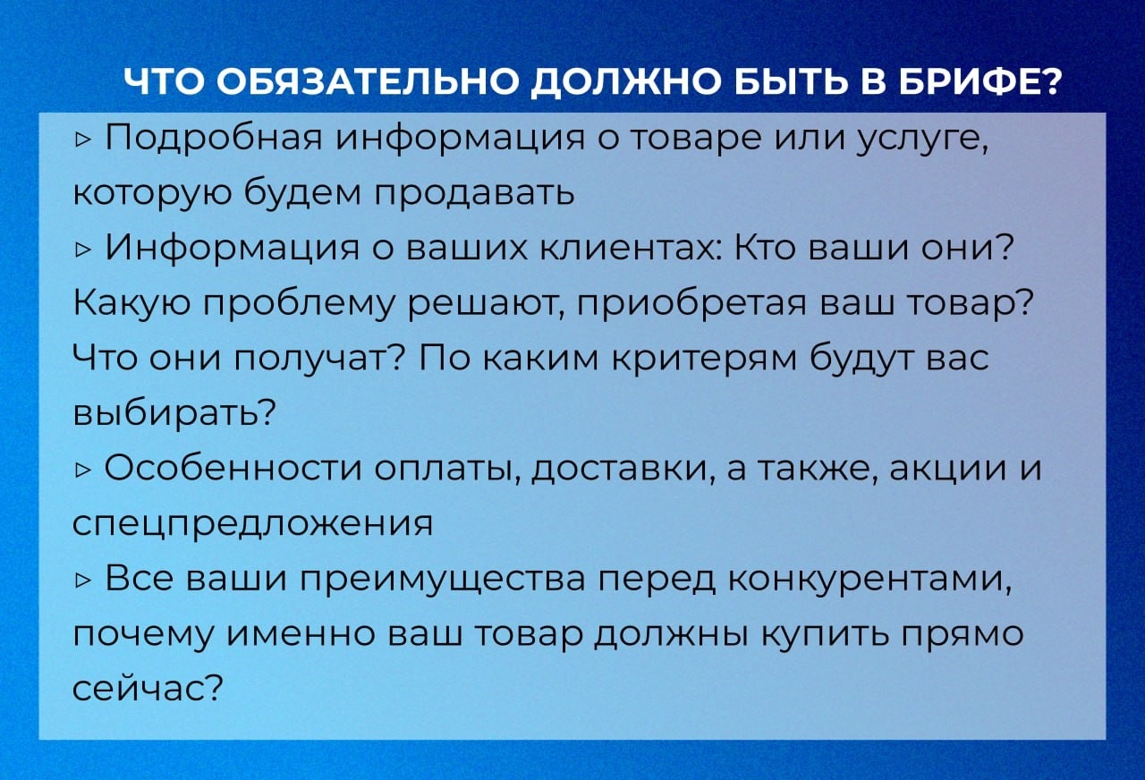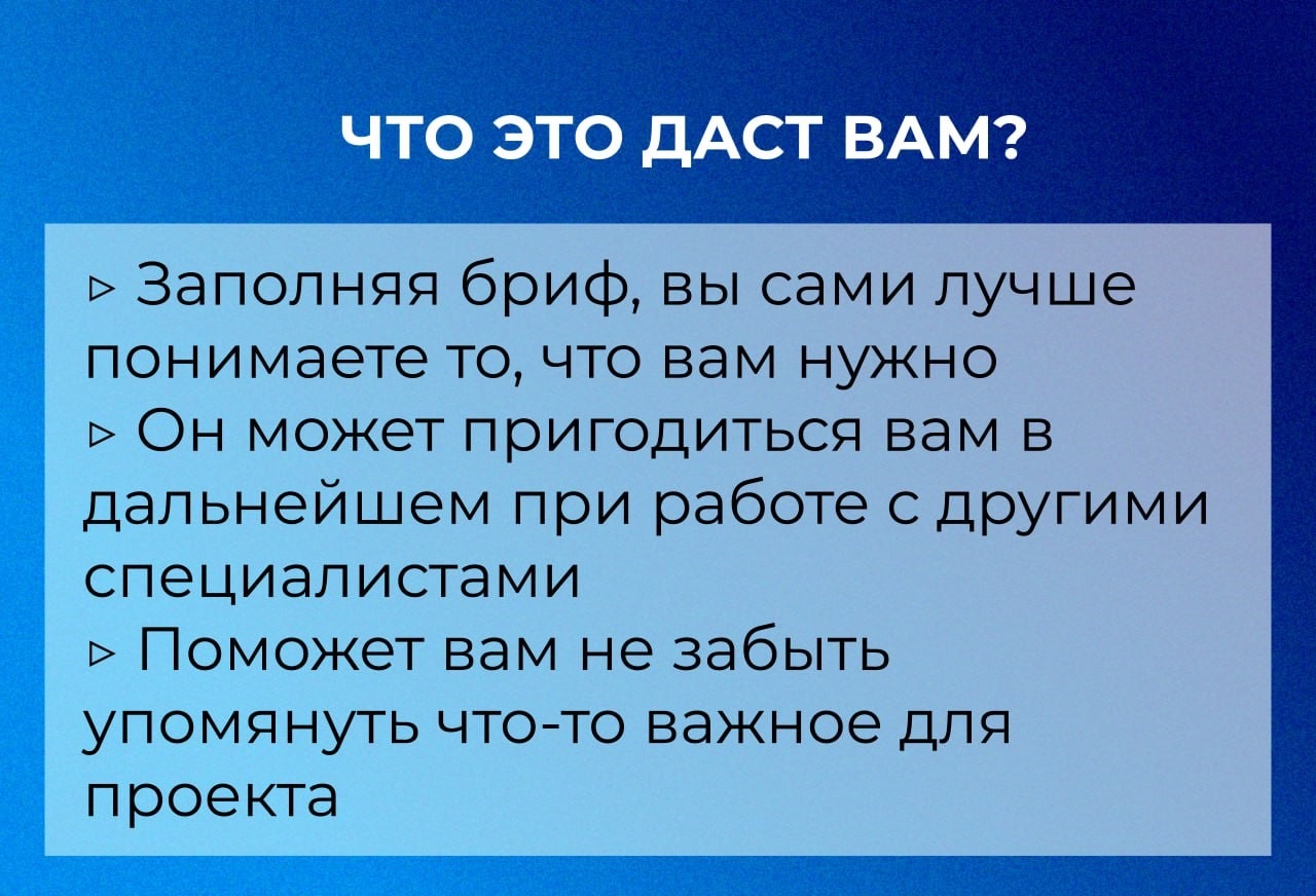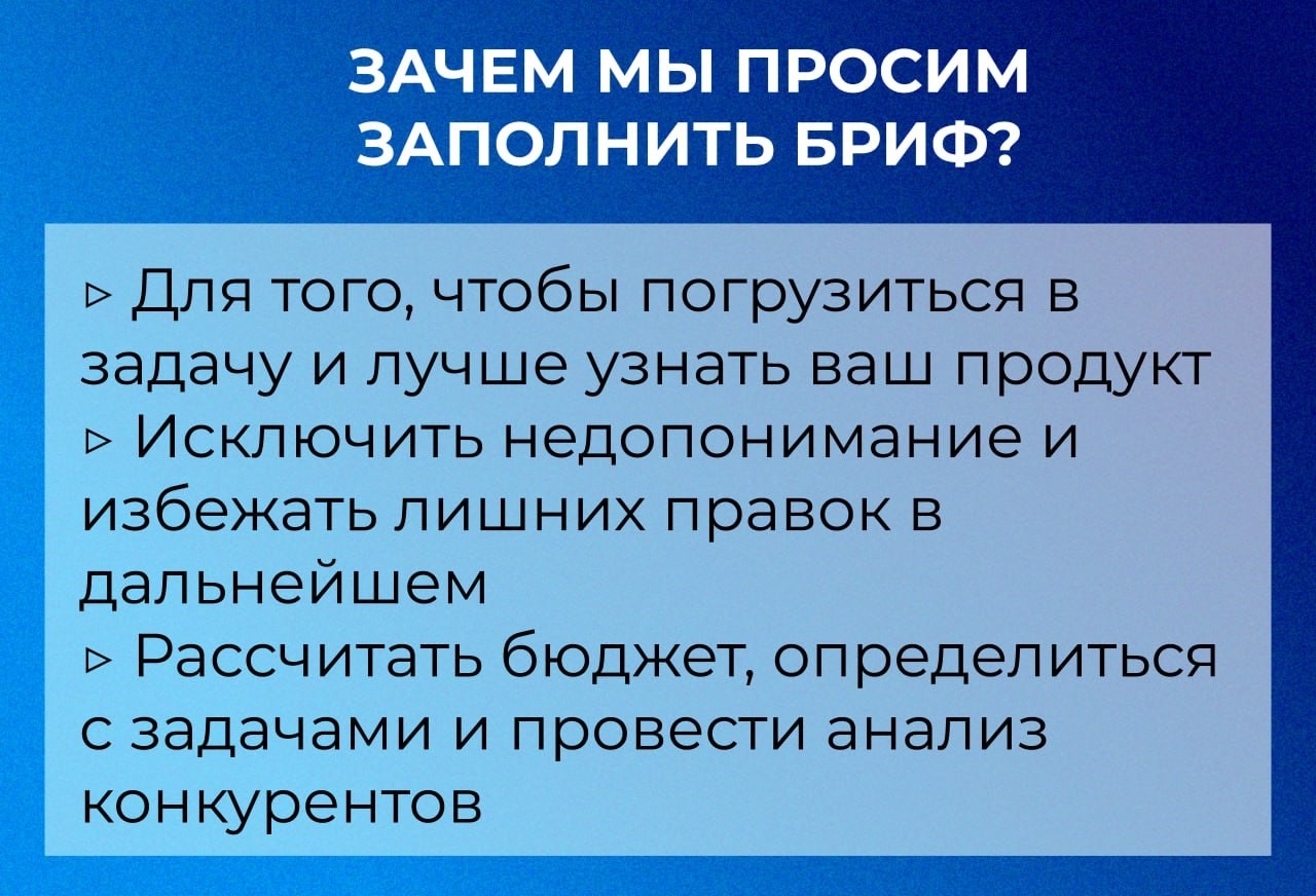 Грамотно сформулированный и внимательно заполненный бриф - залог продуктивного и комфортного сотрудничества между заказчиком и исполнителем.