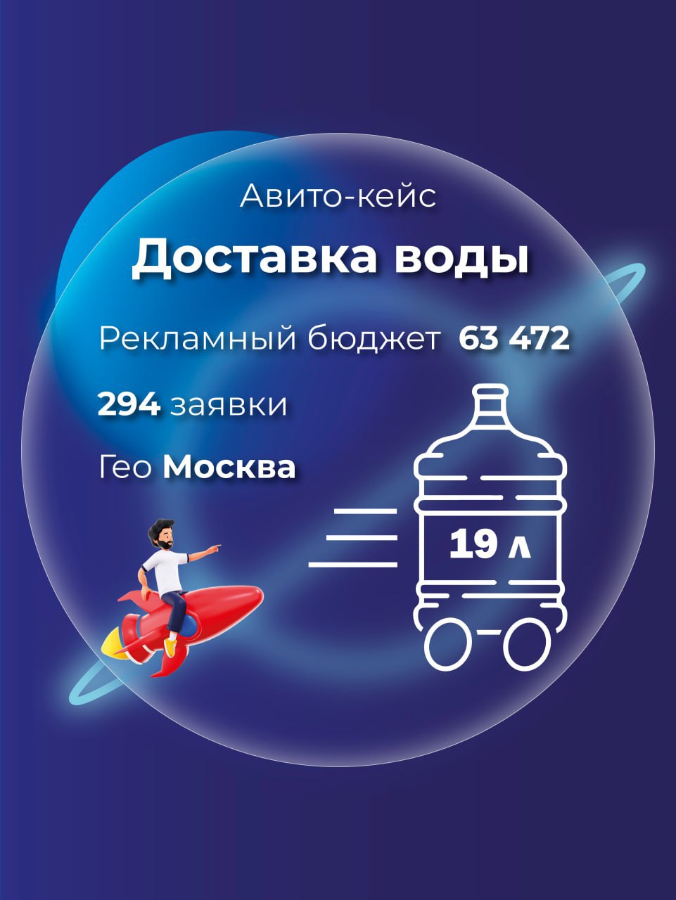 Клиент: Производитель и доставка воды (19 л). Задача: Масштабирование продаж через Авито, снижение стоимости привлечения клиента (CPL). Регион: Москва и МО.
