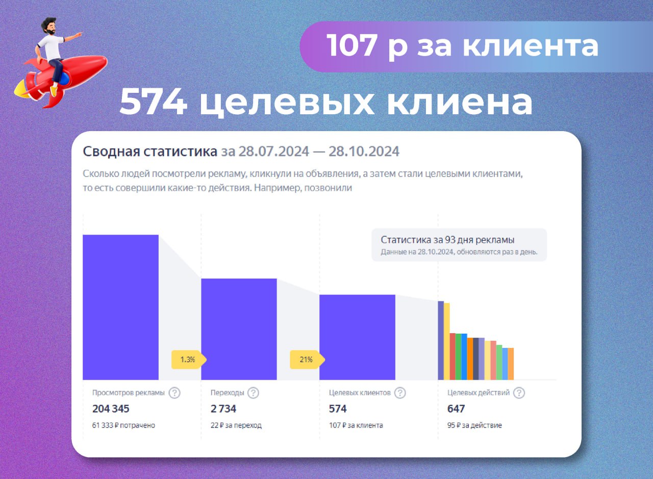 - Стоимость привлечения клиента (CAC): 107 ₽